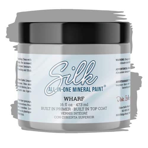 All-in-One Mineral Paint | Dixie Belle Silk | Wharf (16oz) | Neutral Gray All-in-One Water Based Primer + Topcoat | Durable Furniture Paint | Low Reflective Finish