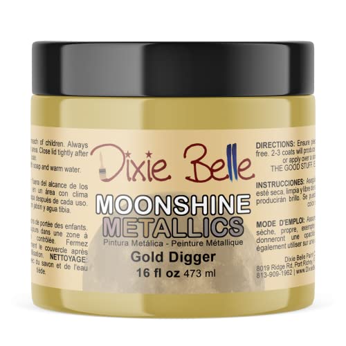 Dixie Belle Moonshine Metallics | Gold Digger (16oz) | Water-Based Shiny Chalk Mineral Paint | Metallic DIY Furniture Paint | Made in the USA