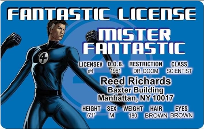 Parody Driver’s License | Mister Fantastic ID | Fake ID Novelty Card | Collectible Trading Card Driver’s License | Novelty Gift for Holidays | Made in The USA